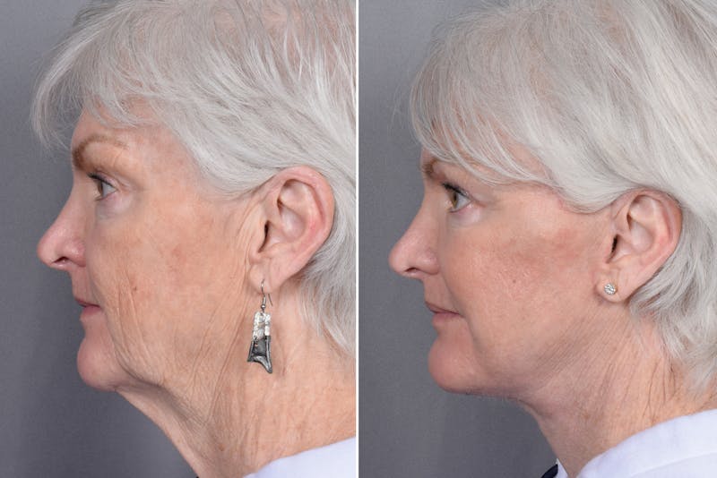 A facelift can lift and tighten the mid-face, softening deep smile lines, but in some cases, a touch of filler is recommended to achieve the best, most balanced result.
